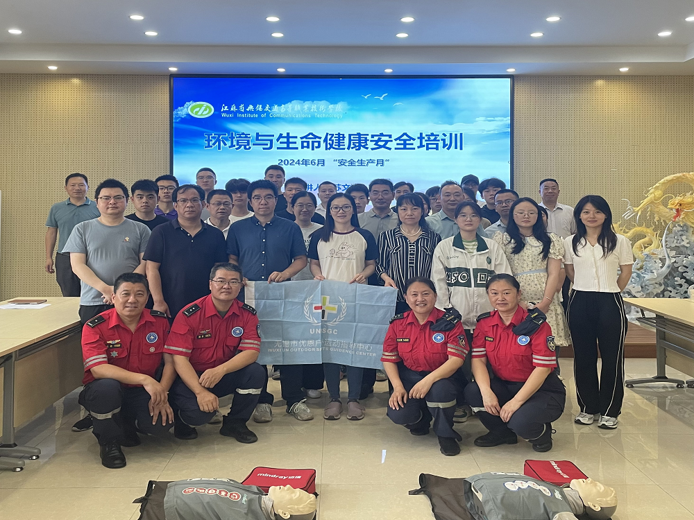 今年 6 月是全国第 23 个、无锡市第 31 个“安全生产月”,主题是“人人讲安全、个个会应急——畅通生命通道”。更好地宣传贯彻落实“安全生产月”活动, 6月13日,安全保卫处牵头无锡市优恩户外运动指导中心,来学校开展环境与生命健康安全培训各处室、院部安全负责人,安全员、学生代表物业及服务外包负责人共60余人次参加了实操培训