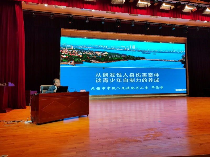 华俭学主任首先讲解了现实生活中人身伤害案件的起因,一般由起初的一件小事演化成刑事案件,主体身份也由最初的权益受害者变成刑事被告人。然后进行了故意伤害案案例的分享,对案例进行解读,告诫同学们要加强自我防范意识,树立法治观念,在成长的道路上与法同行。最后,华俭学主任向我院捐赠了30本无锡中院编印的《民法用典30问》书籍。