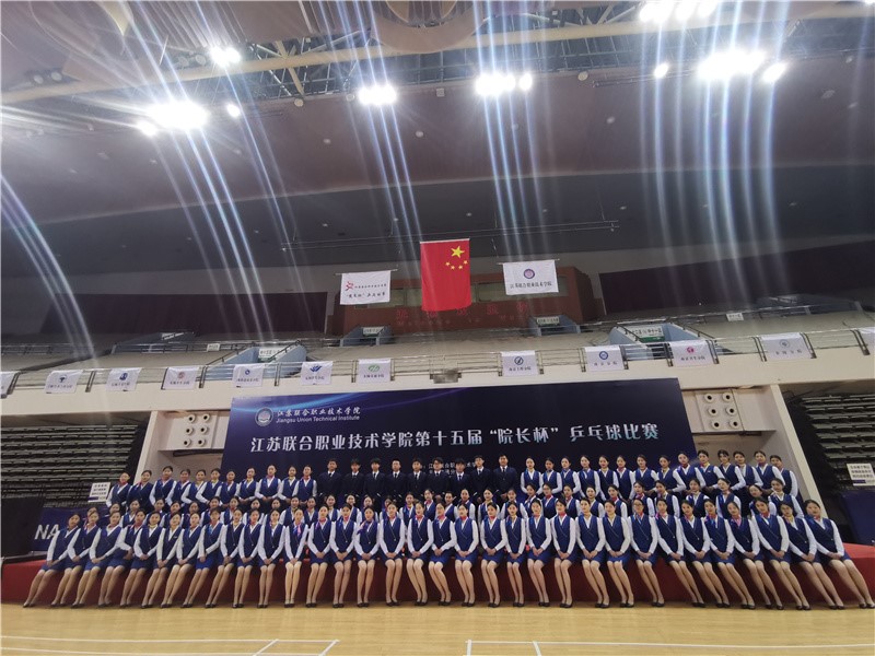 船舶工程学院空中乘务、航空服务专业的学生身着蓝色制服,在赛场入口指引参赛队员入场、在开幕式现场举起手举牌为参赛队伍定位、在道路旁为参赛人员引路,成为乒乓球赛场的蓝色风景线。