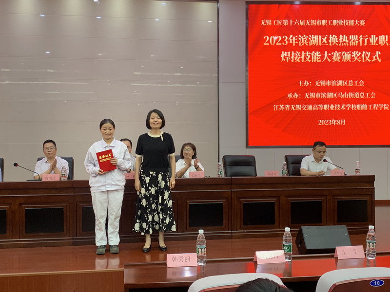 8月17日,由无锡市滨湖区总工会、无锡市滨湖区马山街道总工会联合举办,学校承办的2023年滨湖区换热器行业职工焊接技能大赛颁奖仪式在马山街道报告厅举行。无锡市总工会劳动和经济工作部部长刘国伟、滨湖区总工会党组书记、副主席曹洪达、滨湖区总工会副主席彭光耀、度假区党群工作部部长高祥生、凤凰体育党委副书记、五级职员朱雨兰、马山先进制造业基地党委书记张文伟出席本次颁奖仪式。滨湖区总工会相关科室,凤凰体育船舶工程学院相关负责人,马山先进制造业基地分管负责人和换热器企业工会负责人,以及所有参赛选手参加活动。颁奖仪式由度假区党群工作部副部长、马山街道总工会主席吴军涛主持。