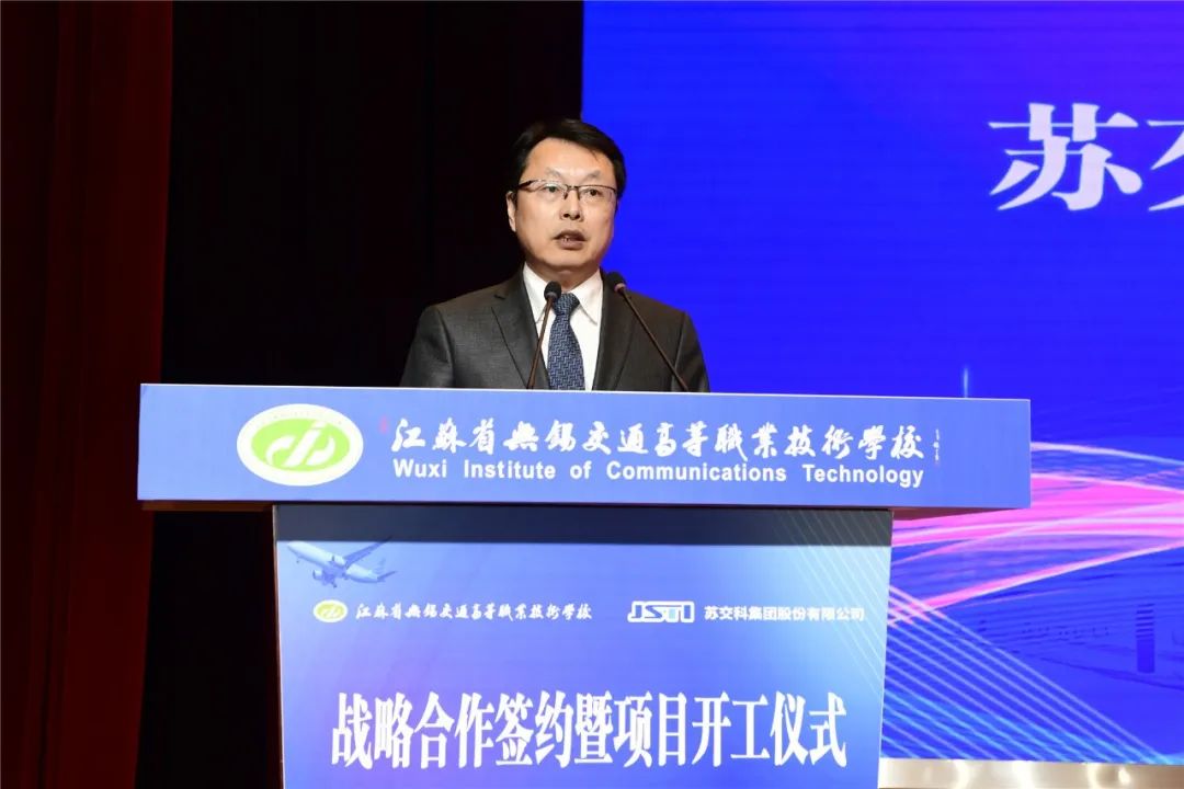 金凌副厅长在讲话中指出,生产性交通工程试验检测中心的共建,是无锡交校和苏交科集团共同落实国家和省相关政策的坚实举措和实际行动。近年来,无锡交校以产教融合协同育人为主线,以四学院三中心为载体,以三教改革为抓手,聚焦现代交通运输体系和社会经济转型发展,着力提升五年制高职人才培养质量,实现了专业结构与交通行业、区域经济、企业需求深度融合,提升了学校服务交通运输现代化建设的能力。苏交科集团拥有工程行业各领域最高等级资质,是国内基础设施领域咨询行业龙头企业、工程咨询行业首家上市公司,2022年,获得省政府颁发的江苏省省长质量奖,是设置奖项以来江苏省交通领域第一家获此殊荣的企业。这些发展成就为校企双方进一步高质量协同发展奠定了坚实的基础。此次共建,是无锡交校和苏交科集团共同落实国家和省相关政策的坚实举措和实际行动。他对共建生产性交通工程试验检测中心提出三点希望:要聚合校企力量,打造校企合作典范。要聚焦人才培养,满足行业技能人才需求。要聚力行业发展,服务交通运输事业。