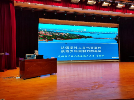 4月28日在船舶工程学院举办了“从偶发性人身伤害案件谈青少年自制力的养成”安全法治教育讲座。主讲人为市中级人民法院关工委副主任、市关工委法治宣传教育报告团成员华俭学。华俭学主任讲解了现实生活中人身伤害案件的起因,随后进行了故意伤害案例的分享,对案例进行解读,告诫同学们要加强自我防范意识,树立法治观念,在成长的道路上与法同行。最后,华俭学主任向学校捐赠了30本无锡中院编印的《民法用典30问》书籍。
