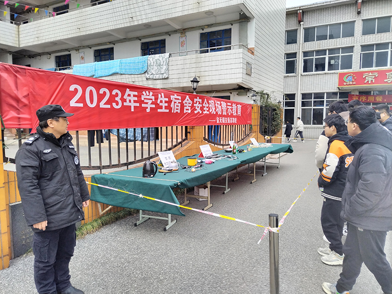 在期初阶段,在人员高度密集的学生宿舍进行安全现场展示专题教育,不仅宣传了宿舍安全常识;更是给学生敲响了宿舍安全的警钟,从思想上提升了学生的安全意识,相信本次警示教育将为广大同学在校生活学习打下坚实的安全基础。