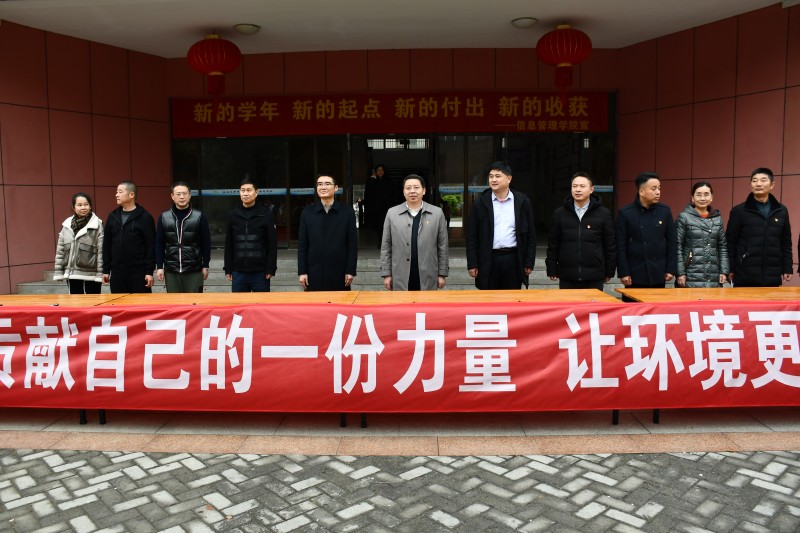 李书记带头在“贡献自己的力量,让环境更美丽”的横幅上签名,表达“让校园更绿、让校园更美”的绿色理念。随后,李书记同后勤党员志愿者、学生志愿者一起,参与义务植树,为生态校园再添新绿。