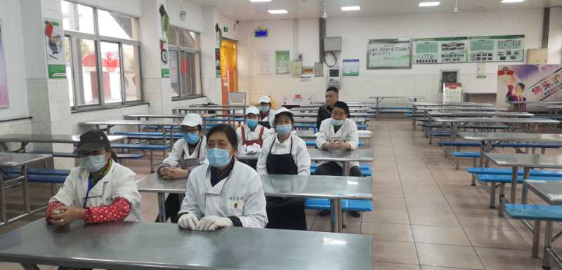 为进一步做好新型冠状病毒肺炎疫情防控工作,切实保障全校师生员工的身体健康和生命安全,确保2020年春季开学工作的顺利进行,在校党委书记李虎的带领下,学生工作处、工会、后勤管理处等部门负责人于2020年4月14日对食堂超市进行开学前准备工作的全面检查。校领导重点对学校食堂就餐场所、操作间环境卫生、设施设备消毒、原料储存、餐用具消毒等准备情况进行检查。最后,校党委书记李虎对学校食堂超市提出四点要求:一要切实做好从业人员健康、个人防护和培训宣传等工作;二要把餐厅、操作间环境、设施设备、原料索证索票及储存、餐用具消毒等关键环节检查落实工作;三要建立健全食品安全各项规章制度和各种记录;四要严格管控供餐配送。配送食品要有包装或使用密闭容器盛放,配送食品前,要对配送工具、周转箱、容器等设备进行全面清洁消毒,全力保障学校广大师生舌尖上的安全。