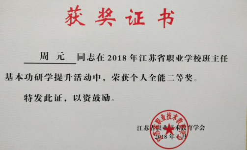 江苏省职业学校班主任基本功大赛二等奖