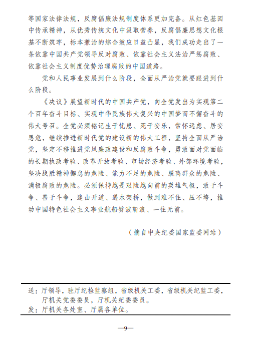 2021年廉文荐读第28期——学习领会党的十九届六中全会精神