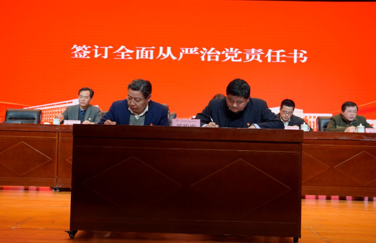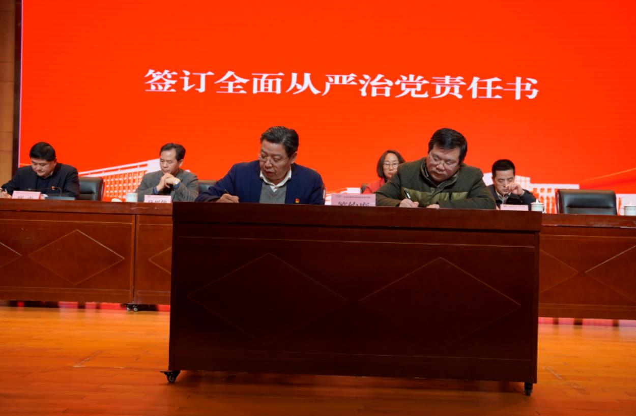 会上,学校纪委书记邢勇作题为《忠诚履职尽责 建设廉洁校园 为学校高质量发展提供坚强政治保证》的工作报告。集中观看了警示教育专题片《别让“自作聪明”毁了人生》。校党委书记李虎与党委委员签订了2022年全面从严治党责任书。