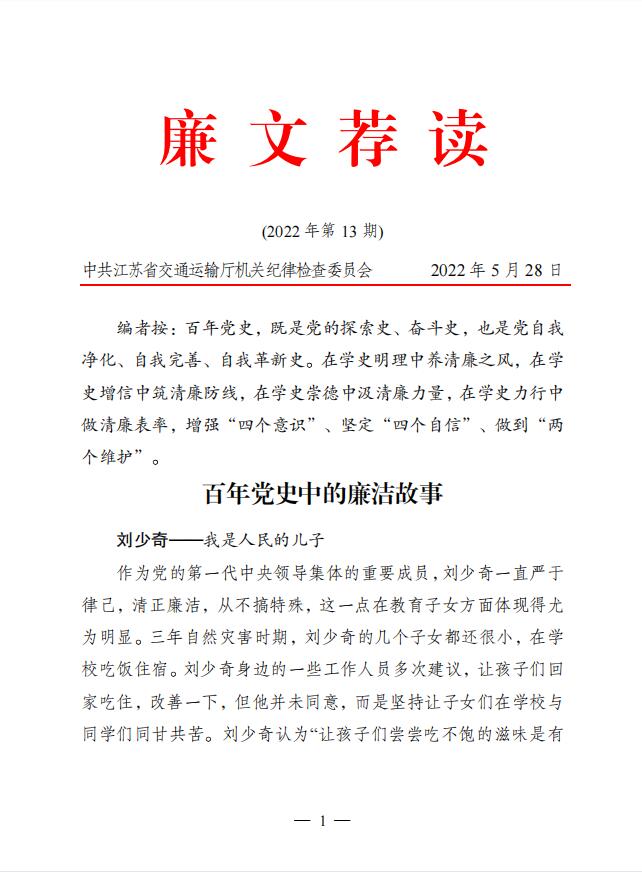 2022年廉文荐读第13期——百年党史中的廉洁故事