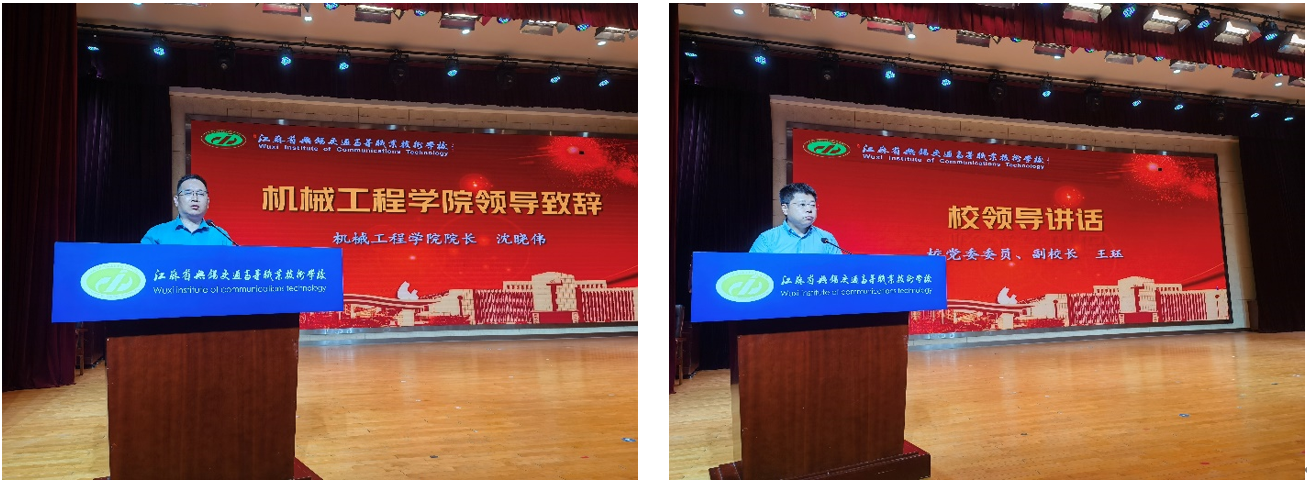 接着机械工程学院院长进行了发言,沈院长从机械工程学院的发展历程,学院的现状进行了阐述,指引机械学子要“抓紧时间学知识,掌握技能求生存”。最后校党委委员,副校长王珏进行了致辞,王校长指出:无锡交校欢迎大家的到来,希望大家厚植爱党爱国爱校情怀,明确人生理想目标,传承拼搏奋进、勇创一流的职业精神,塑造人格、修为品德,展现新时代职校生的青春风采,在中国式现代化国家建设新征程中建功立业。