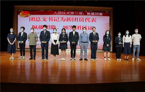 活动在庄严的国歌声中拉开帷幕。入团仪式上,各学院团总支书记为新团员代表颁发团员证,佩戴团徽,并组织老团员重温入团誓词,新团员进行入团宣誓,全体人员共同接受了一次思想的升华和心灵的洗礼。新团员吴沁尧同学、老团员李丹凤同学作为代表发言,她们均表示紧跟习近平总书记“把青春献给祖国”的号召,坚定不移的高举团旗跟党走。不负韶华、不负时代、不负人民,敢闯、敢干,以青年人的拼搏努力,来践行“请党放心,强国有我”的铮铮誓言。