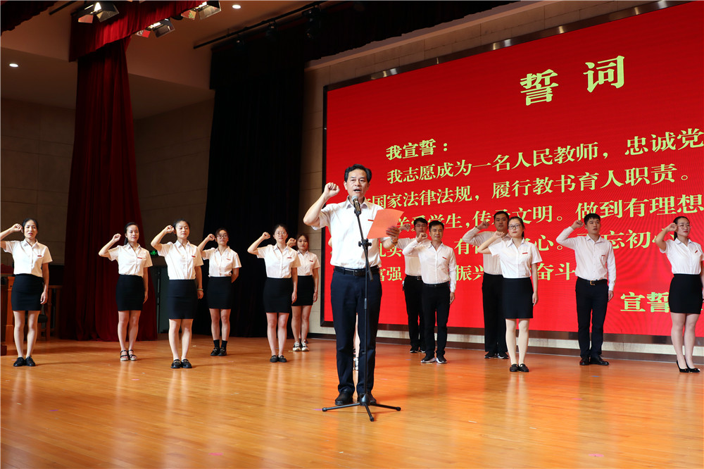 会上,校领导对“最美教师”、文明教职工、“最美家庭”进行了表彰;向在岗位上辛勤耕耘30年的教师颁发30年教龄证书。现场举行了新教师入职仪式;观摩了省教学大赛一等奖获奖团队的现场展示;师生代表做了交流发言,教师代表宣读“学先进、树形象、比奉献”倡议书,充分展现了新时代学校教师群体的形象。