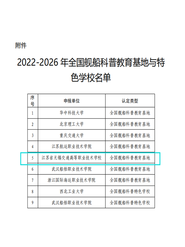 近日,由中国造船工程学会审核认定,学校获评全国舰船科普教育基地。学校全国舰船科普教育基地是依托江苏省交通运输行业船文化中心,建设面向校内外开展舰船科普宣传教育的活动基地。近年来,学校积极参加各类舰船科普教育活动,年均接待中小学生科普教育达1000多人次。