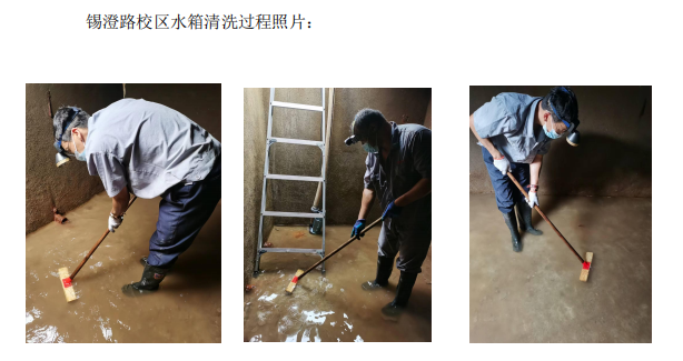 贯彻落实《中华人民共和国传染病防治法》,确保学校水质的卫生安全,防止水质二次污染,确保水质的卫生质量和使用安全,后勤管理处联系无锡优诺卫生防疫技术服务有限公司(专业水箱清洗公司),于2022816日对两校区水箱进行全面清洗消毒和水质检测,2022825日清洗消毒完毕,92日出具检测报告,有效保证学校生活用水的卫生安全。