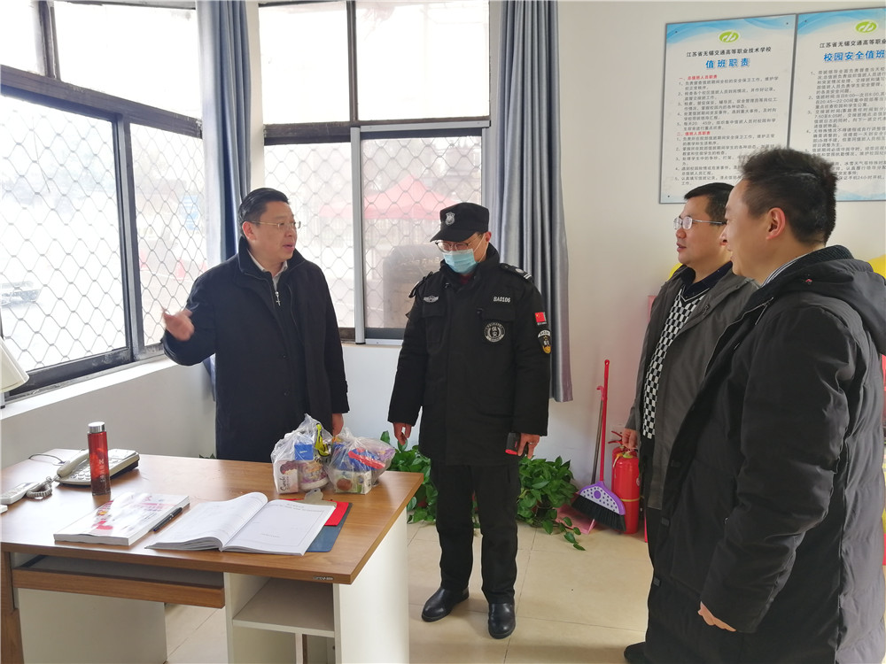 在新春佳节到来之际,2月12日大年初一上午,校党委书记、校长李虎在相关职能部门负责人的陪同下,分别对学校钱荣校区和锡澄校区在岗值班教职工和工作人员进行走访慰问,送上校领导的关怀和温暖,并送上诚挚的新春祝福。