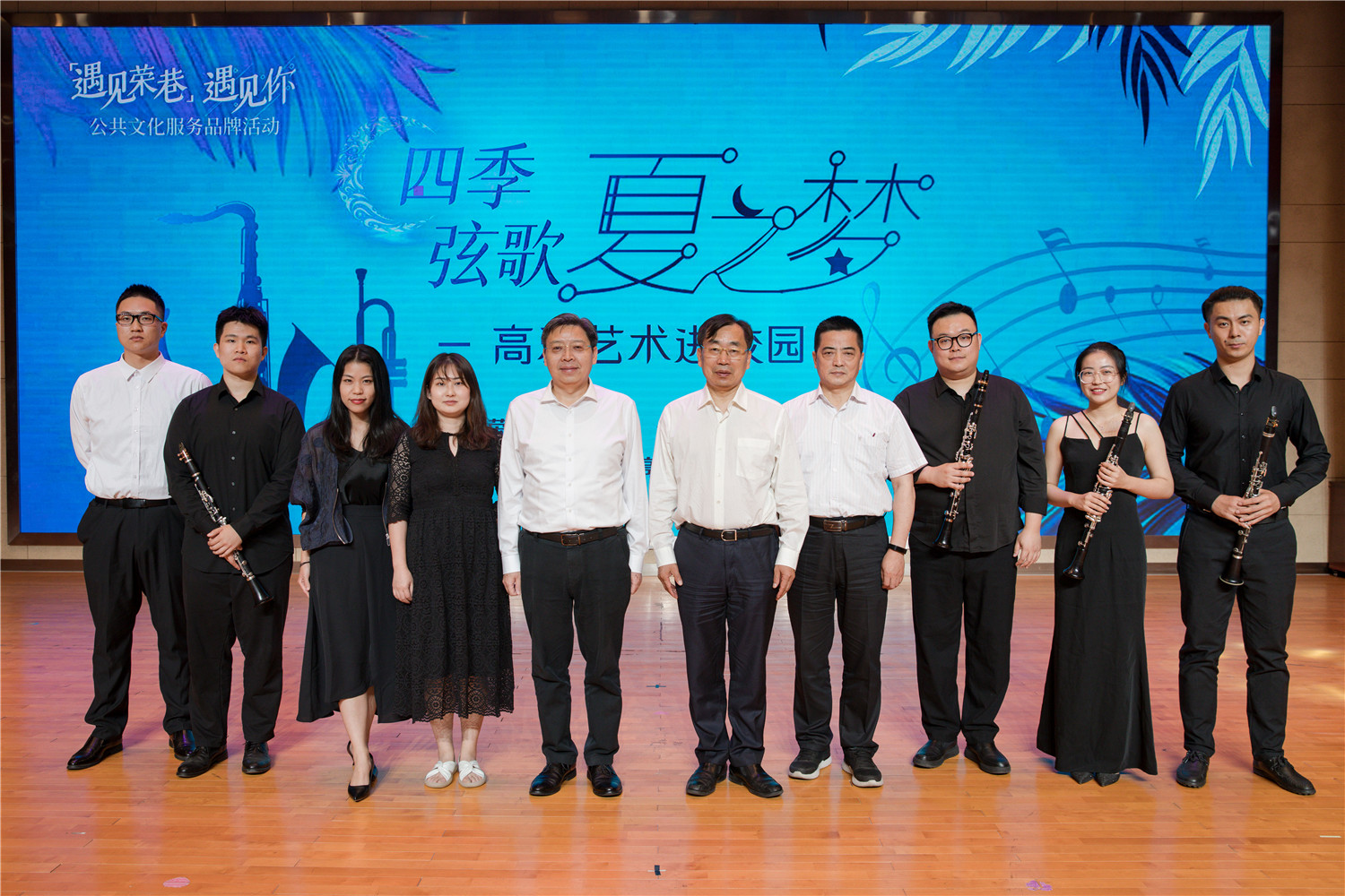 开幕式结束后,高雅艺术进校园活动拉开帷幕。无锡洛可可乐团的演奏家们为师生们带来一场精彩的管乐演奏表演,精彩的演出赢得全场师生的阵阵掌声与喝彩,现场感受高雅艺术的魅力