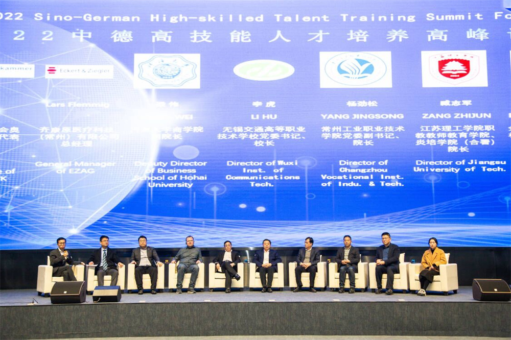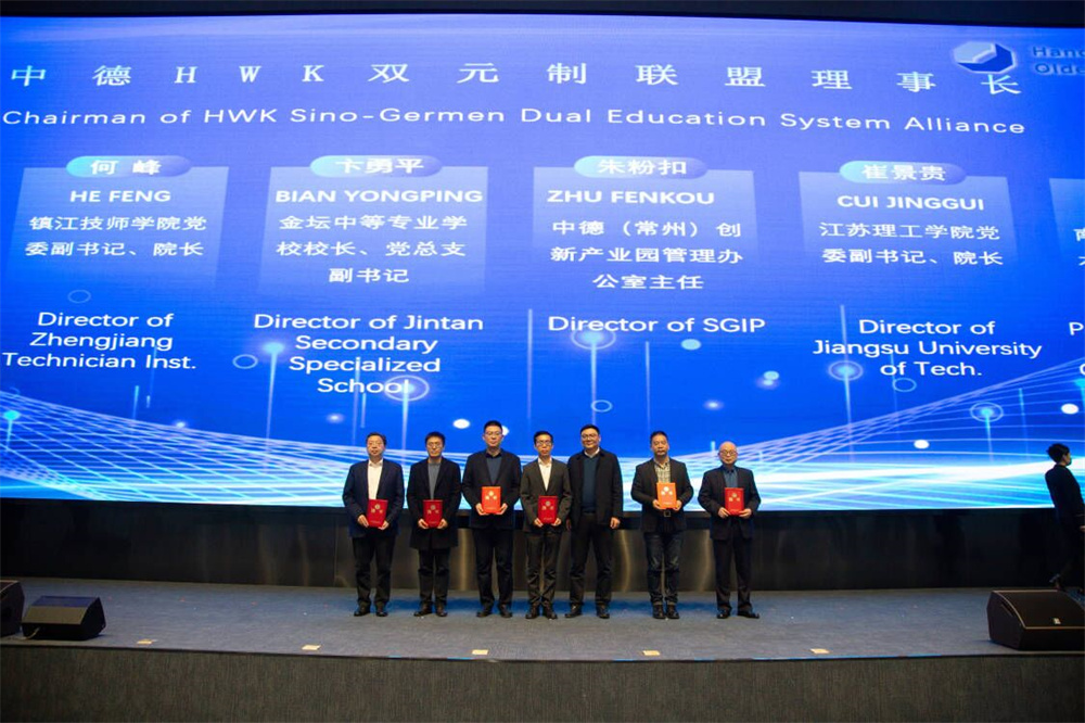 12月16日,中德HWK双元制联盟(以下简称“联盟”)成立大会暨2022中德高技能人才培养高峰论坛(以下简称“论坛”)在常州中德创新产业园举办。学校党委书记、校长李虎、副校长耿兴华及相关学院领导出席大会。大会由德国手工业行会和常州市金坛区人民政府共同举办,学校当选联盟理事长单位,李虎书记当选联盟理事长。