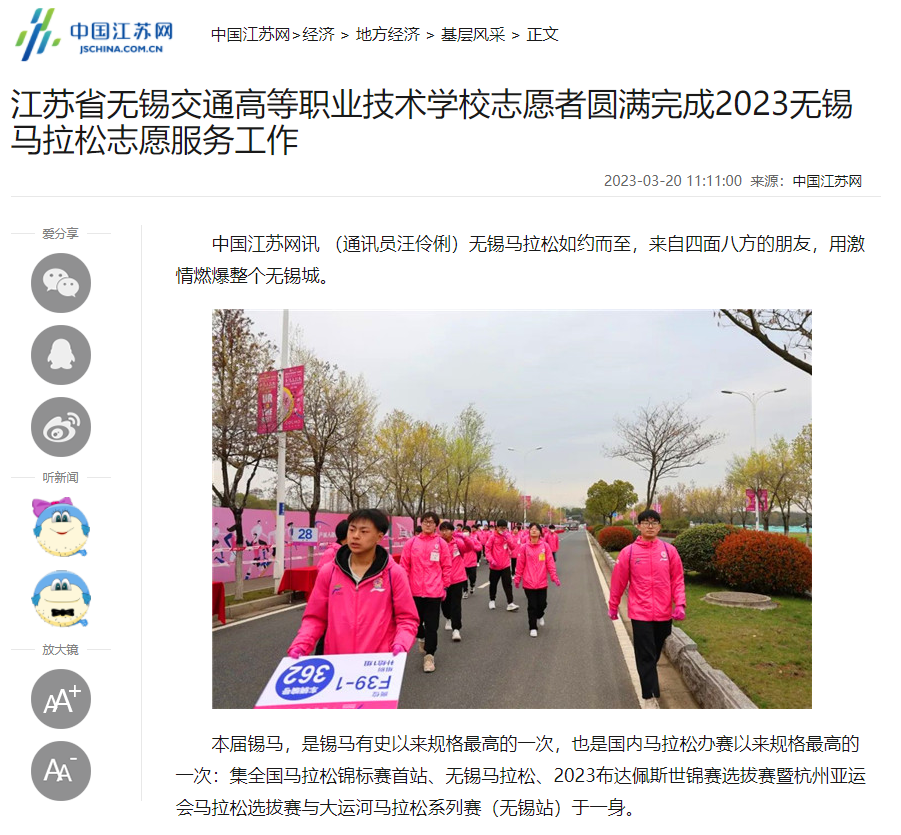 凤凰体育志愿者圆满完成2023无锡马拉松志愿服务工作_中国江苏网 (jschina.com.cn)
