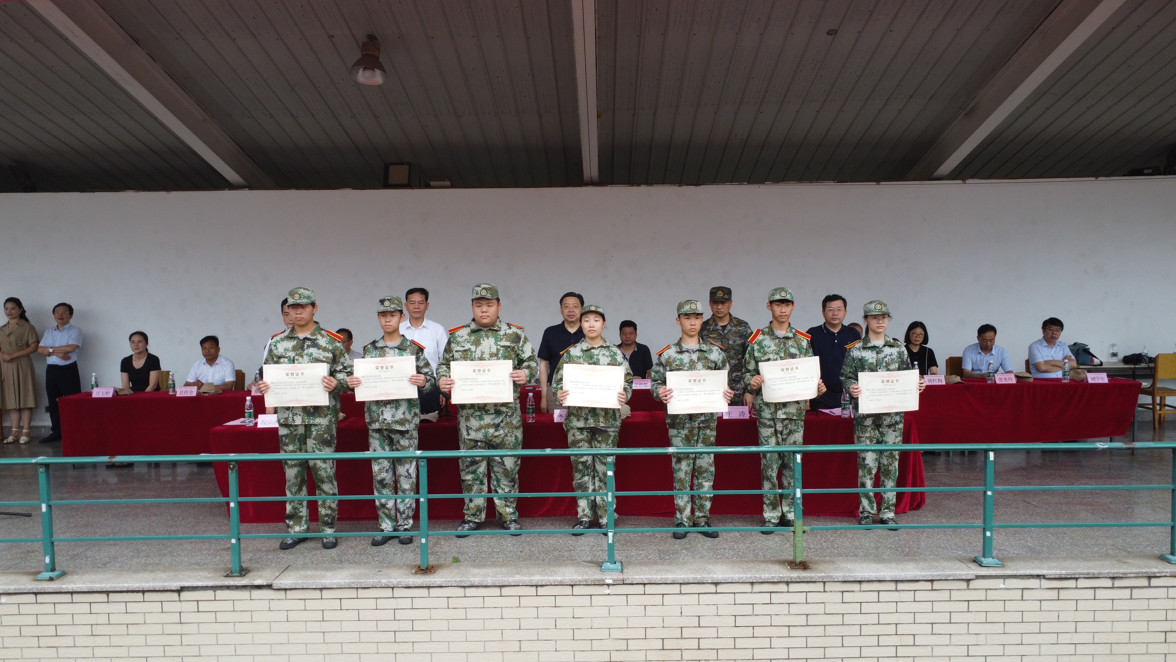 范次猛宣读《关于表彰2022级军训先进个人和先进集体的决定》。10个班级被授予“军训先进集体”荣誉称号, 162名同学获得“军训先进个人”荣誉称号。校领导为获得先进个人和先进集体的学生代表和班级代表颁奖。
