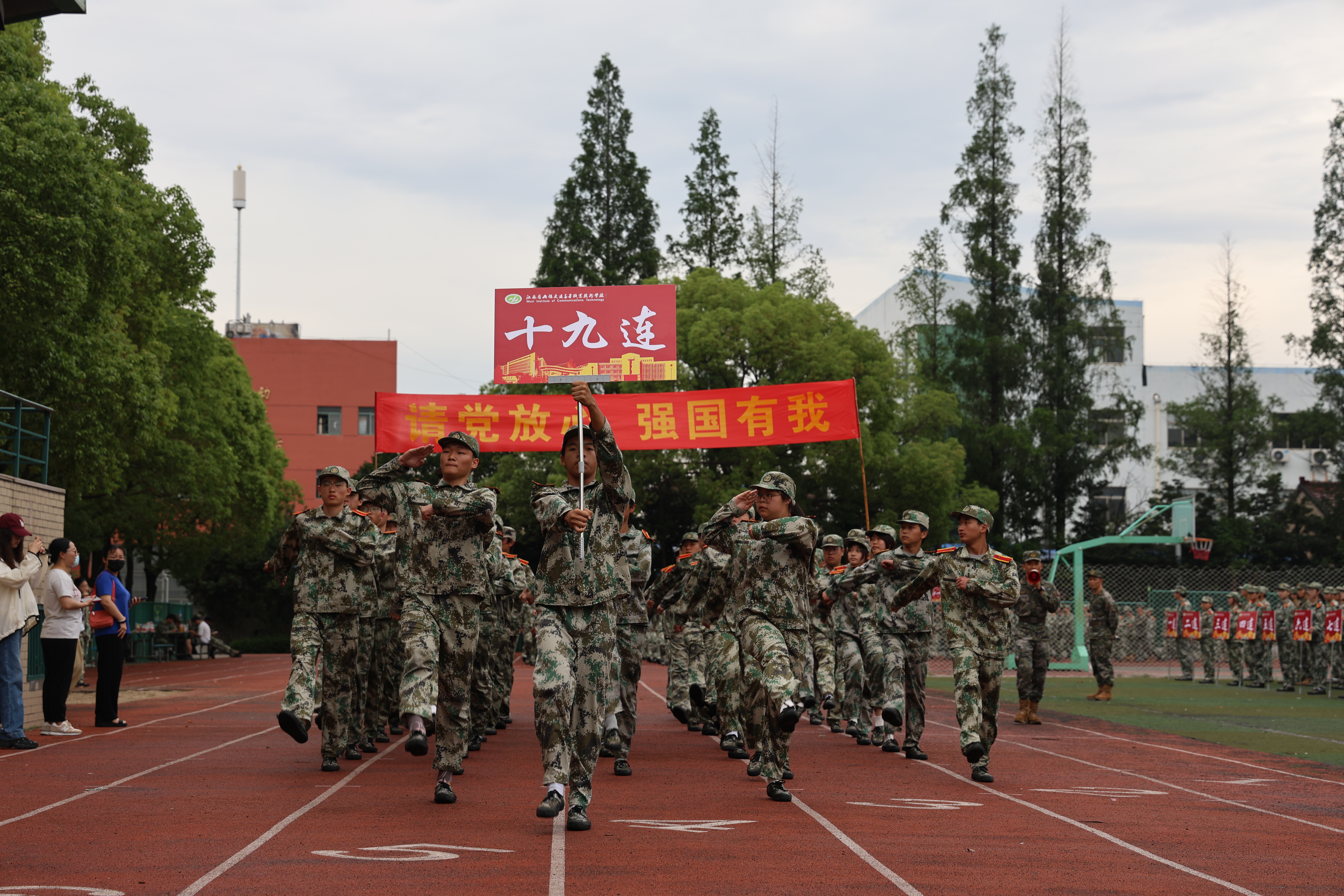 大会在雄壮的国歌声拉开帷幕。30个连队以自信的姿态和昂扬的斗志依次走过主席台,开展分列式会操表演。立正、稍息、踏步、踢腿,同学们规范的动作、整齐的步伐、响亮的口号、饱满的热情赢得了阵阵掌声,展现了交校青年坚定的信念和顽强的意志,也彰显了本次军训的成果。