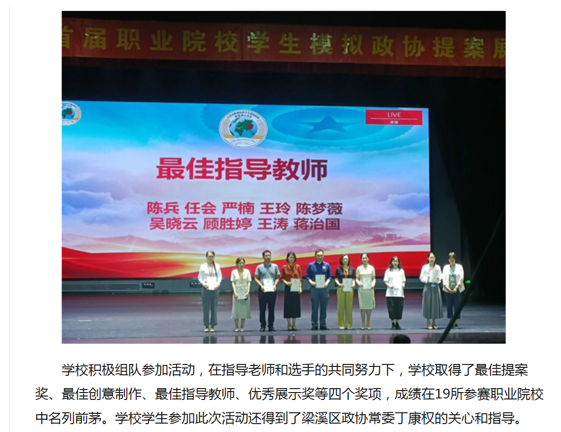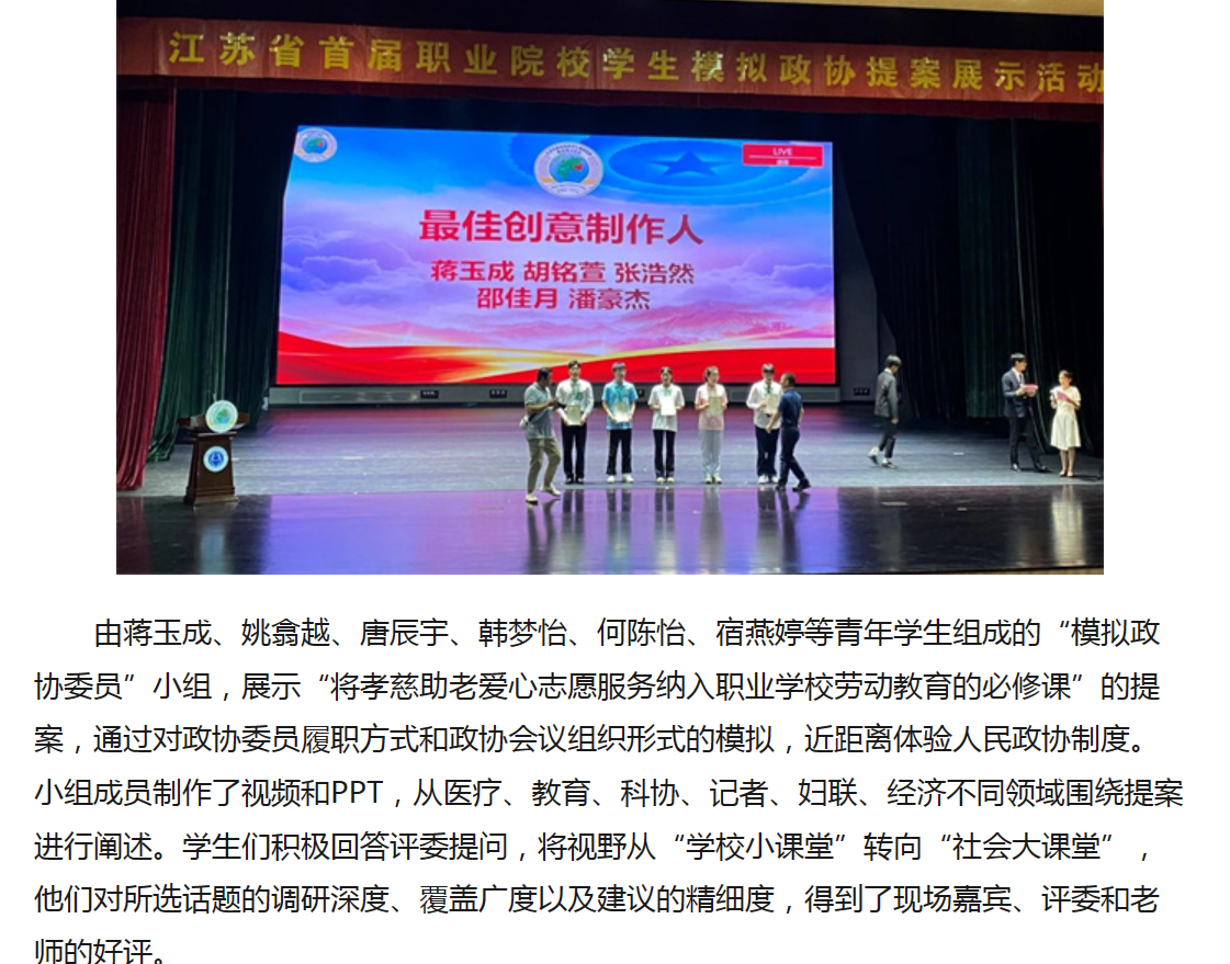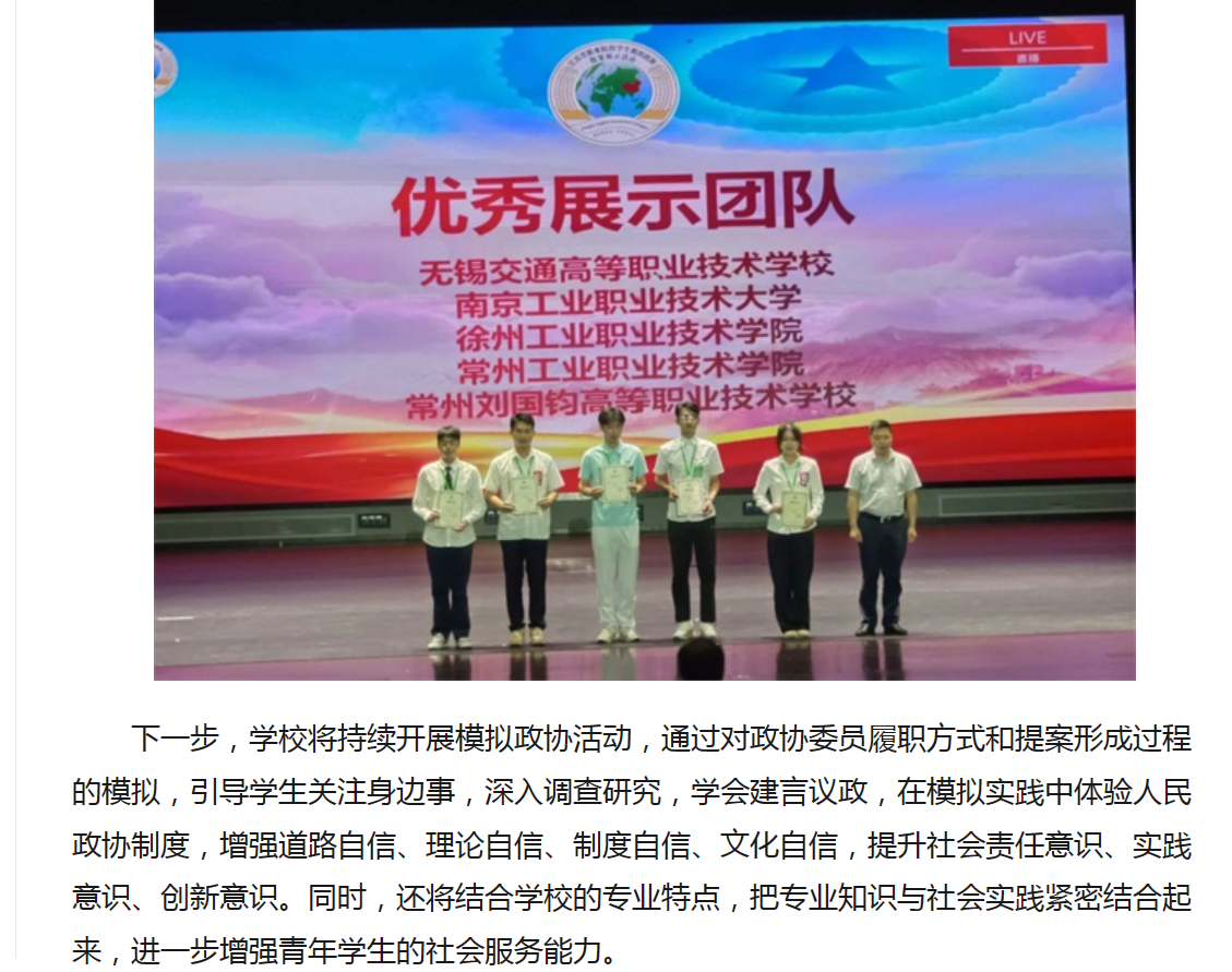 江苏联院:无锡交通分院在江苏省首届职业院校模拟政协提案展示活动中取得佳绩