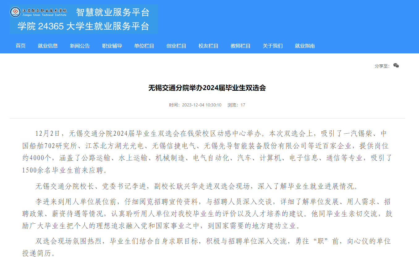 江苏联院:无锡交通分院举办2024届毕业生双选会