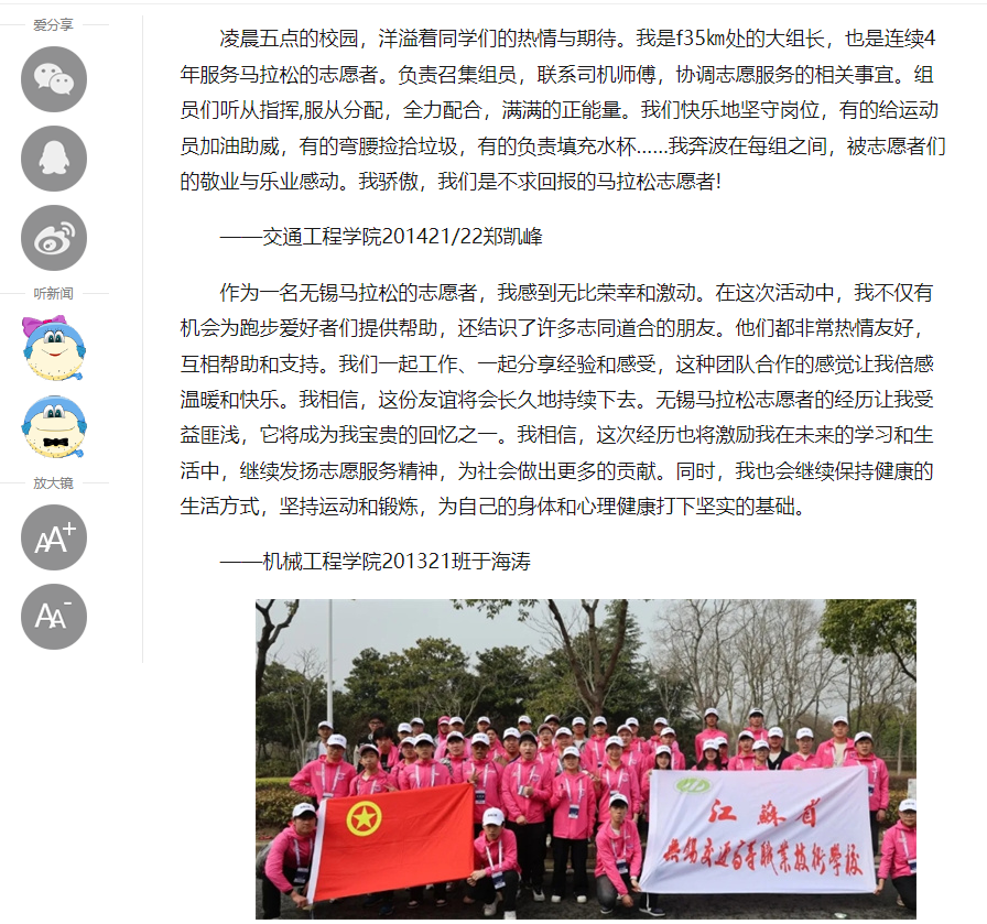 中江网:凤凰体育志愿者积极助力无锡马拉松活动
