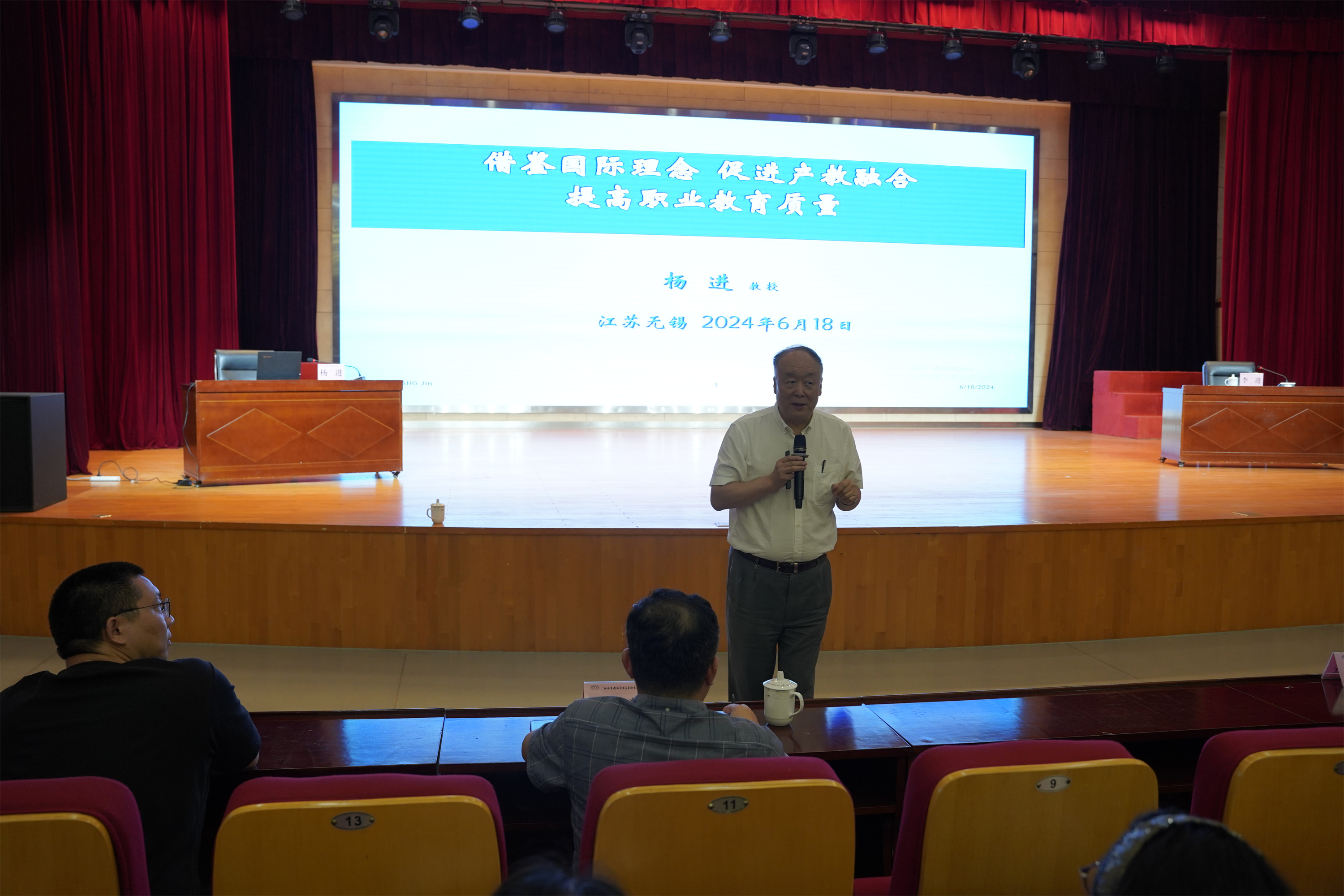6月18日,教育部职业技术教育中心研究所原所长,中国驻联合国科教文组织原大使衔代表杨进教授受邀来校,为全校教师带来“借鉴国际理念,促进产教融合,提高职业教育质量”主题讲座。讲座由学校党委书记、校长李进主持。