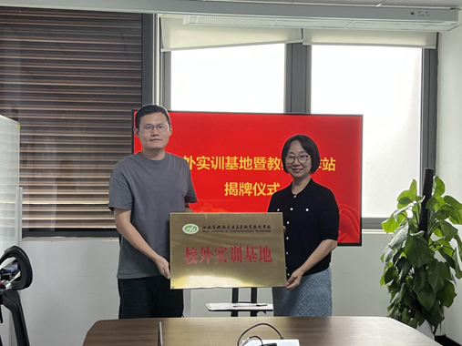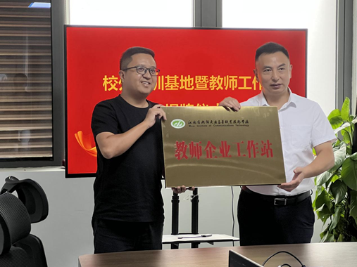 调研期间,学校向澳鹏公司授“教师企业工作站”“校外实训基地”铜牌。