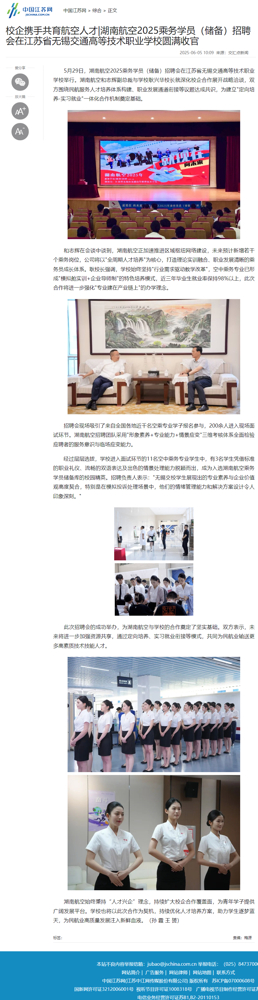 中江网:校企携手共育航空人才|湖南航空2025乘务学员(储备)招聘会在江苏省无锡交通高等技术职业学校圆满收官