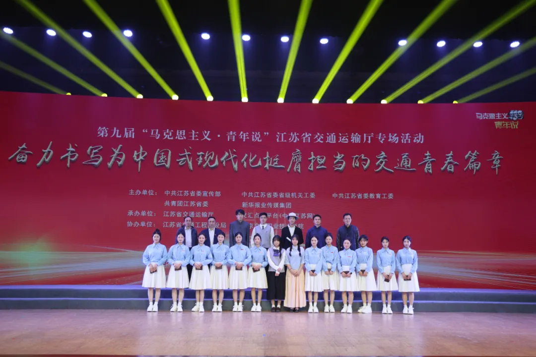 11月6日,由省委宣传部、省委省级机关工委、省委教育工委、团省委、新华报业传媒集团共同主办的第九届“马克思主义·青年说”江苏省交通运输厅专场活动在南京交通职业技术学院举行。我校师生精彩演绎的《音诗画<大道同行 强国有我>》节目通过青年与革命先驱李大钊、铁路巨匠詹天佑的跨时空对话,将个人理想融入“交通强国”蓝图中,展现了新时代青年的担当风采。