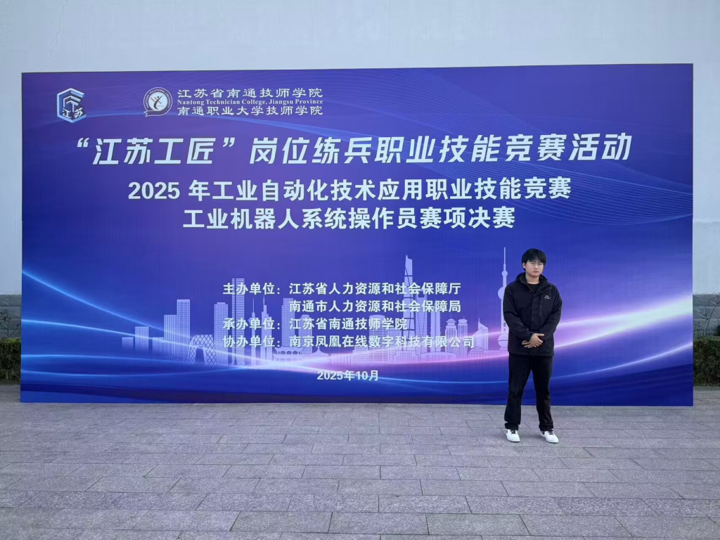 近日,2025年江苏省工业自动化技术应用职业技能竞赛工业机器人系统操作员决赛在江苏省南通技师学院圆满落幕。作为省级一类职业技能赛事,本次竞赛由江苏省人力资源和社会保障厅主导,吸引全省36所院校的174名选手同台竞技,上演了一场高水平的技能比拼盛宴。凤凰体育机电工程学院表现亮眼,刘森老师凭借精湛技艺斩获教职工组一等奖,学生阙豪奋勇争先摘得学生组一等奖,师生双冠的优异成绩彰显了学校在工业自动化技能人才培养领域的硬核实力。