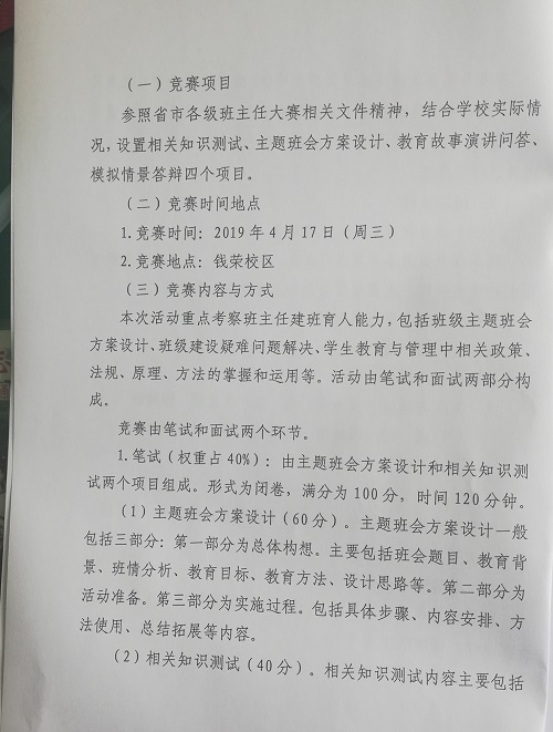 学校关于开展第四届班主任基本功大赛的通知