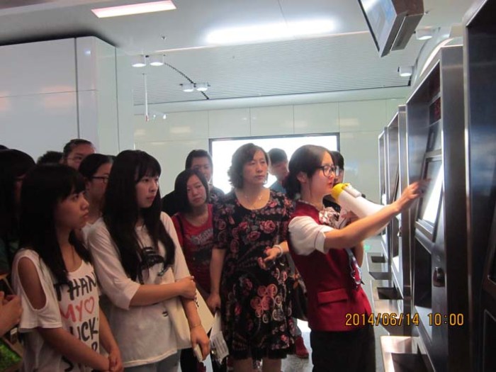 2014年6月14日早上9:30,交通工程系32名暑期地铁志愿者在系部毛兰霞书记和朱珂玮老师带领下,前往无锡地铁一号线太湖广场站进行岗前培训。地铁工作人员带领学生参观车站的站厅和站台,对同学们详细说明志愿者的工作内容和注意事项,同学们认真听讲并做了笔记。在地铁工作人员的详细讲解下,32名同学逐一认识了各种轨道设备,并了解了如何去使用它们。