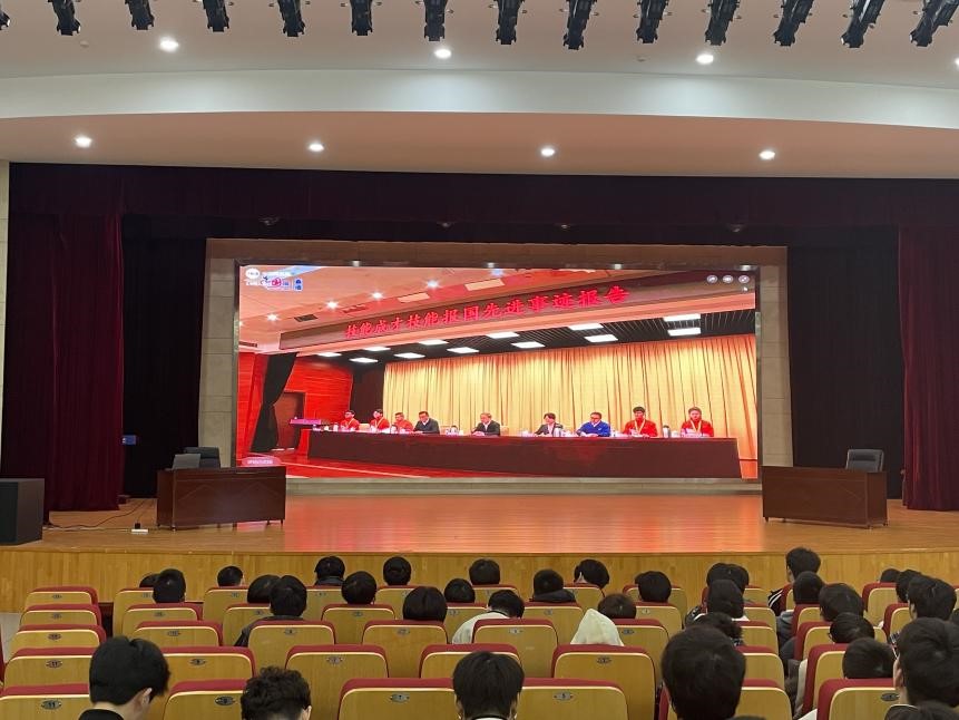 学校组织学生观看技能成才技能报国先进事迹报告活动