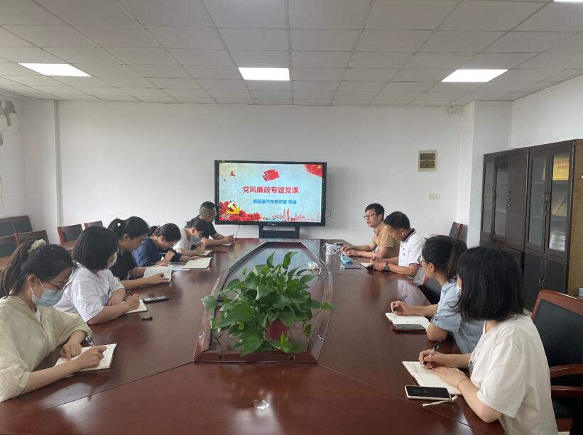 为全面贯彻落实党的十九大和十九届历次全会精神以及中央、省、市纪委全会精神和全省交通运输系统全面从严治党暨警示教育工作会议精神,根据《凤凰体育关于组织开展党风廉政建设月活动的通知》(省锡交纪[2022]4号)要求,新能源汽车教研室党支部于2022年6月13日组织全体党员和教师在学院会议室开展了党风廉政专题学习会,会议由支部书记张俊主持。