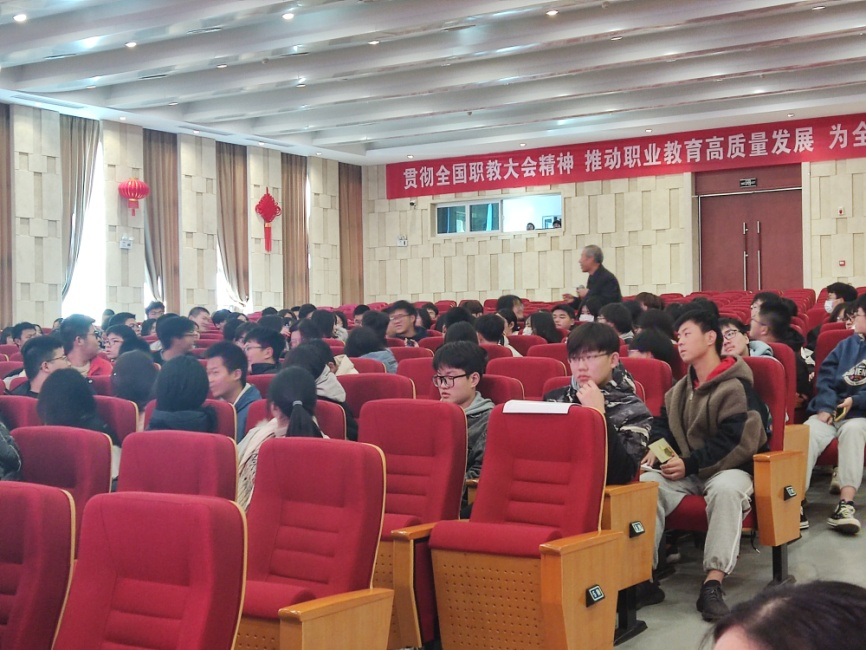 讲座接近尾声时,蒋老师还走到学生中间进行互动,并自带了小礼物作为奖励。最后,蒋老师语重心长的对同学们提出了殷切希望:大力弘扬工匠精神,勤学苦练,深入钻研,努力成长为高素质技术技能人才能工巧匠大国工匠,在平凡岗位上书写精彩华章。