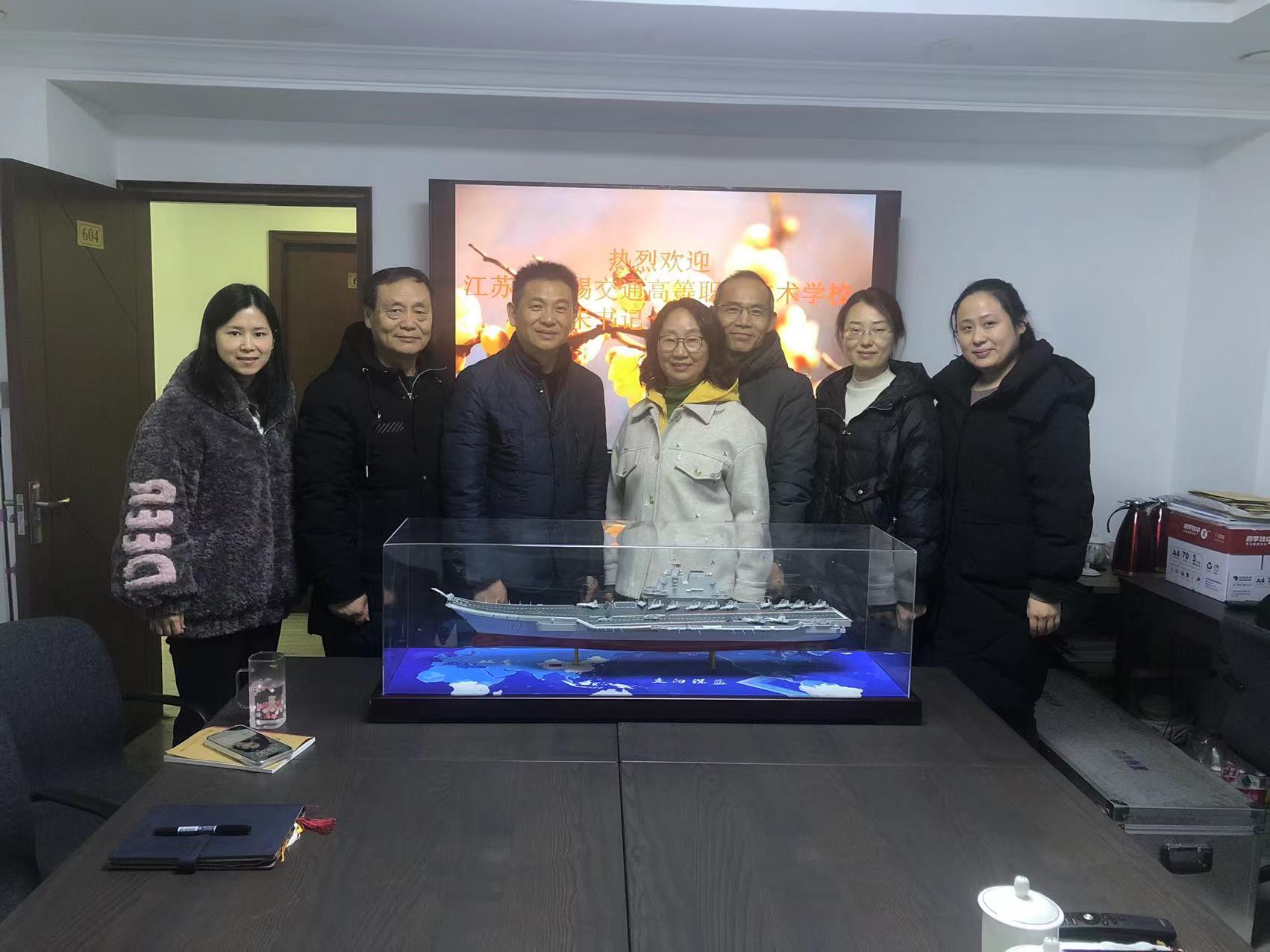 2月23日,江苏省交通运输企业协会副秘书长朱乾震、沈克宁向学校捐赠“辽宁舰”船模,学校党委副书记、五级职员朱雨兰出席了活动并接受了捐赠。受赠的“辽宁舰”船模将被放置于江苏省交通运输行业船文化中心。