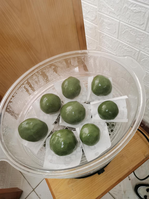 活动伊始,社团指导老师通过知识问答、讲故事的形式,讲解了清明节的由来、本地的清明节习俗以及有关清明节的传说,让社团成员懂得传承中华民族优秀文化的重要性。接着,指导老师口头讲解制作青团的方法,并在QQ群中分享了具体的步骤。社团成员纷纷动手,揉面团、加青汁、加豆沙,活动室里一派热闹景象。人多力量大,没多久,青团做好了。一个个整齐地摆放在盘子里。蒸一蒸,清香之味扑鼻而来,社团成员带着笑容品尝自己的劳动成果,自豪之情溢于言表。