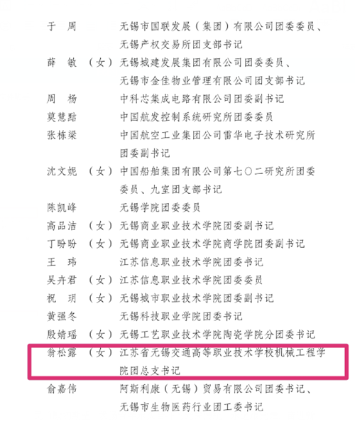 我校凤凰体育信息管理学院团总支获评“无锡市五四红旗团支部(团总支)”,船舶工程学院181121(41)班李丹凤同学和信息管理学院181612班赵唯一同学获评“无锡市优秀共青团员”,机械工程学院团总支书记翁松露同志获评“无锡市优秀共青团干部”。