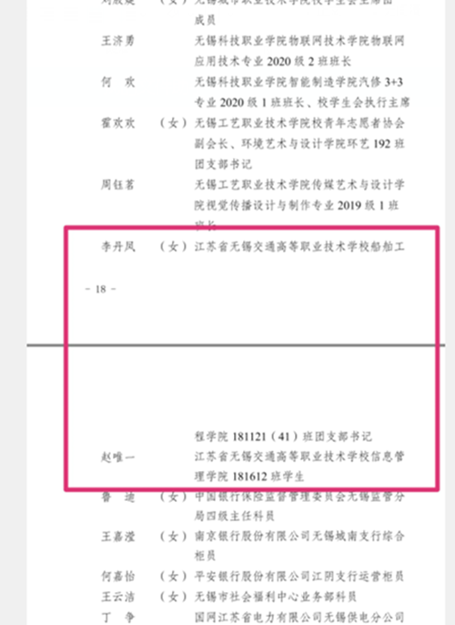 她担任着学院181121(41)班团支部书记,充分发挥新时代勇于创业、敢于创新、善于创优的“三创”精神,积极参加学校的各类活动,2021年9月,在江苏联合职业技术学院第二届五年制高职学生职业生涯规划决赛中,荣获一等奖。