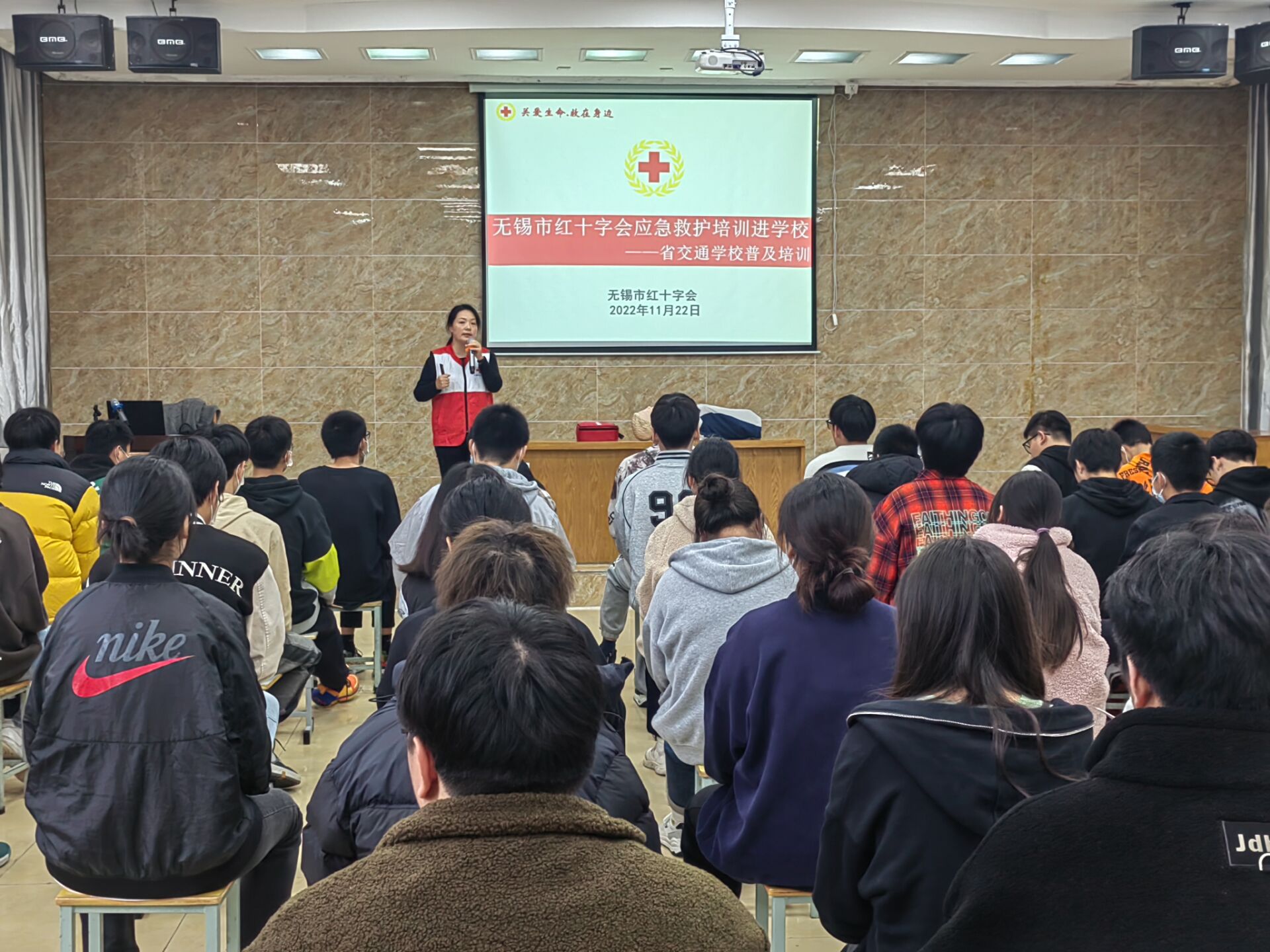 为大力弘扬“人道、博爱、奉献”的红十字精神,帮助广大师生了解急救知识,增强安全意识,提高自救互救能力,提升广大师生健康素养、防灾避险和自救互救技能,保障师生生命安全和身体健康,建设平安校园提供有力保障20221122日下午,学校邀请无锡市红十字会到校开展2022年第二期应急救护培训,150名师生参加培训