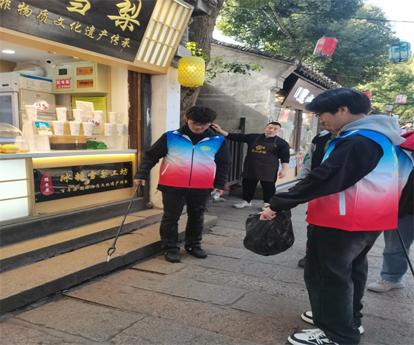 在惠山古镇,志愿者们到景区开展“团聚青春力量,倡导文明旅游”青年学雷锋志愿服务主题活动,以实际行动引导游客增强生态文明观念和环境保护意识,为游客营造干净舒适的游园环境。