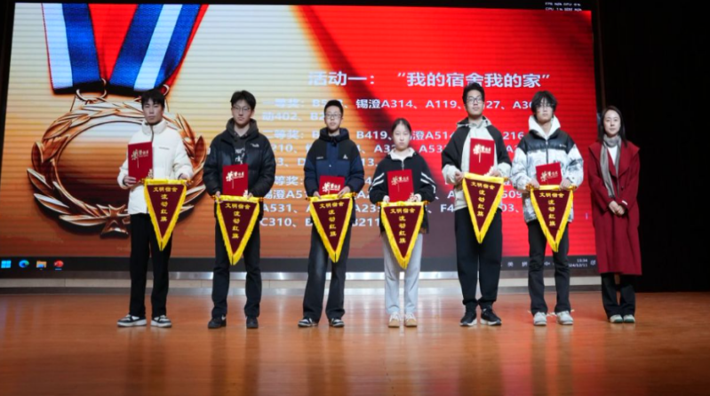 1211午,我校2024“宿舍文化节”评比颁奖仪式暨宿舍长培训讲座大礼堂举行。学生工作处副处长籍鑫慧,后勤管理处宿舍负责人,银城物业总经理,各学院学工领导参加颁奖仪式,并为获得奖项的寝室学生代表发奖状和奖品。