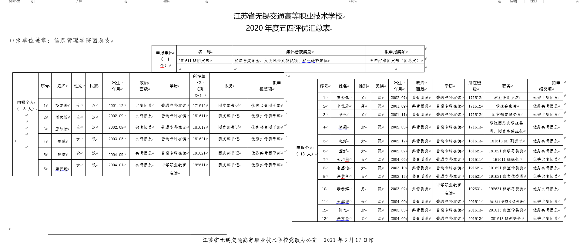 公示:2020年度三好学生、优秀学生干部等荣誉