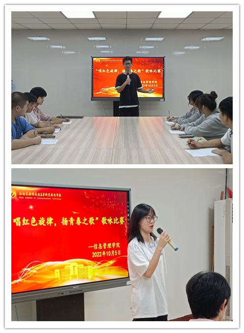 为进一步庆祝国庆节的到来,追寻革命先辈的光辉足迹,传承经典文化。2022105日晚六点,信息管理学院在正德楼三楼会议室举办了“唱红色旋律,扬青春之歌”主题歌咏比赛,国庆假期留校的十余位同学参加了比赛。