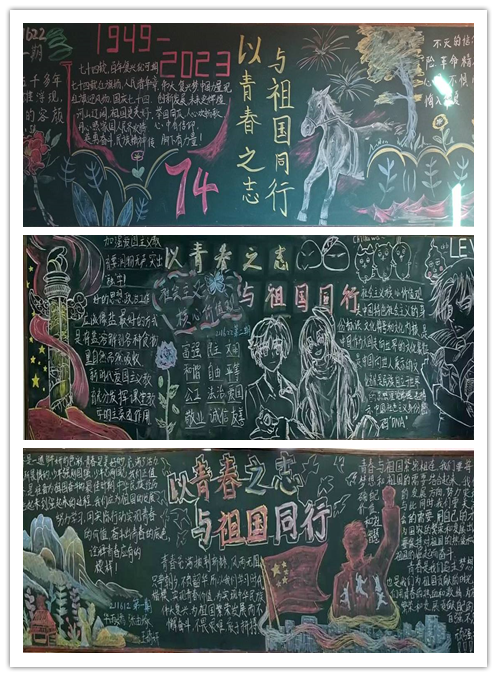 同学们用青春的色彩表达着对祖国的深情,把炽热的爱国热情融进一幅幅板报里。各班的风格不同,却一样地承载着同学们对盛世中国的祝福,这都包含着他们的精心设计。以下获奖的班级有: