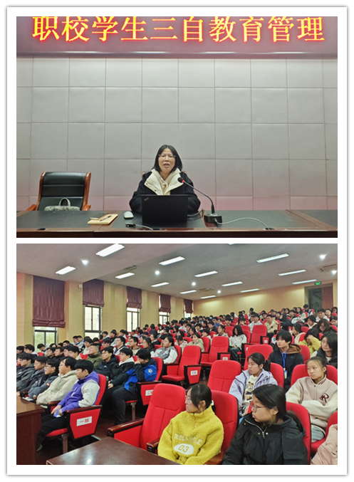 为培养适应新时代职业教育发展需要的高素质高技能人才,增强学生的岗位意识、责任意识、团队意识和服务意识。12月4日下午一点,信息管理学院在学校学术报告厅开展职校学生三自教育管理讲座,学院党总支副书记蒋红梅老师作报告。
