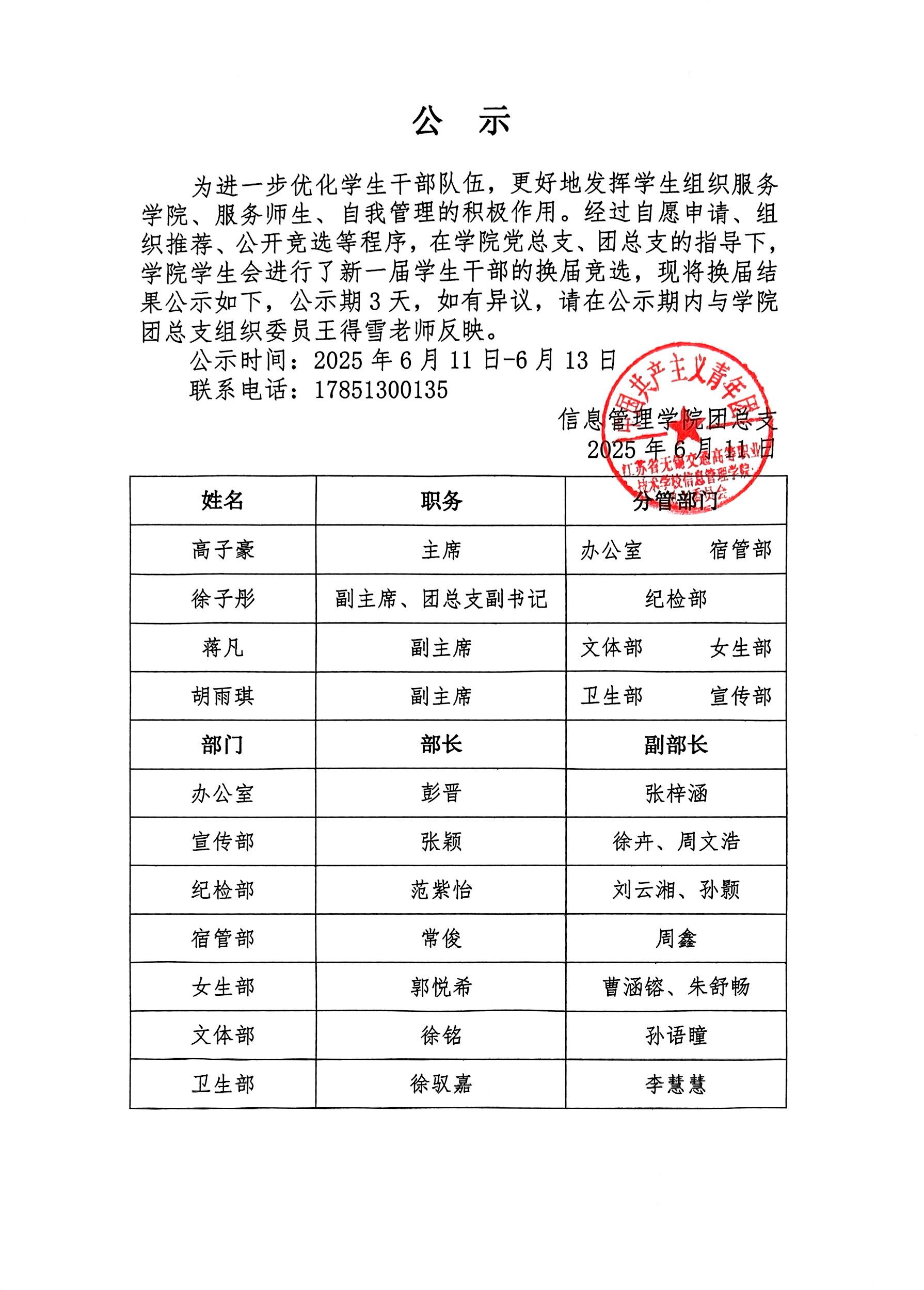 学生会换届选举结果公示