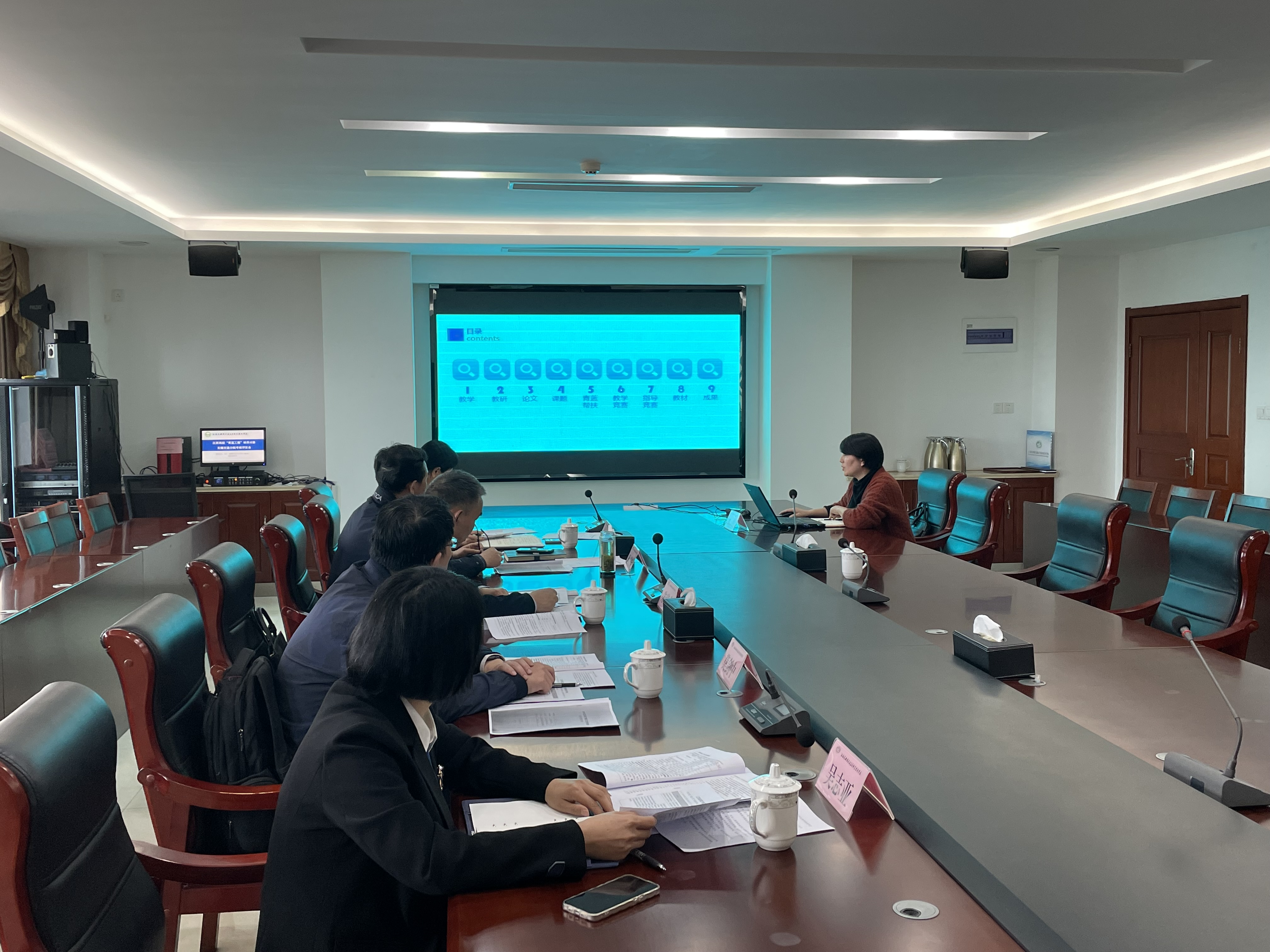 本次培养期满考核对象为2020年江苏省高校“青蓝工程”优秀青年骨干教师培养对象刘方。考核组专家共有5名副高以上职称人员组成,其中包括2名校外专家。首先,刘方同志就培养期内的教学、科研、学科专业建设、梯队建设、青年教师培养等计划完成情况向专家组进行汇报。专家组结合汇报的成果情况,对照考核标准和培养对象的《目标责任书》,认真审核相关佐证材料并进行评议。